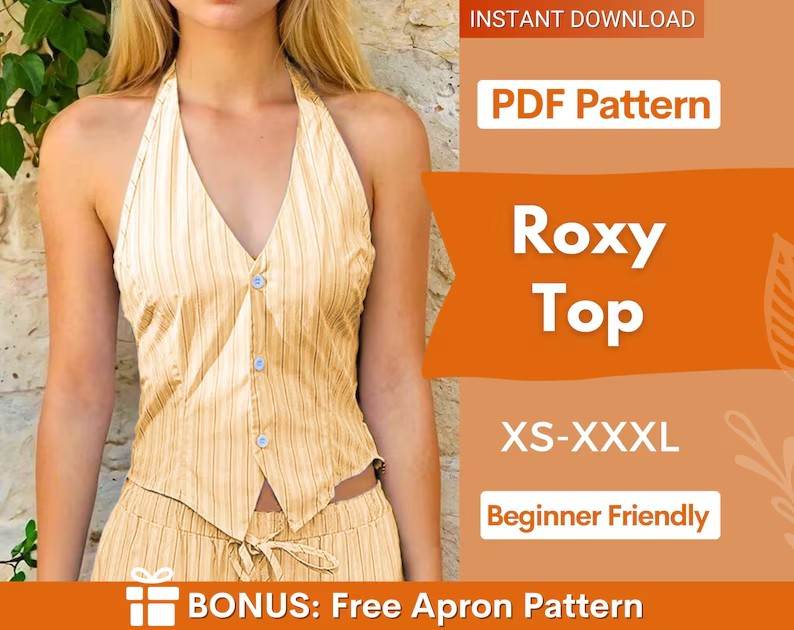 Back Tie Top Sewing Pattern | Summer Top Pattern | Halter Top Pattern | Sewing Pattern Women | Tie Top Pattern | Easy Top Beginner Pattern