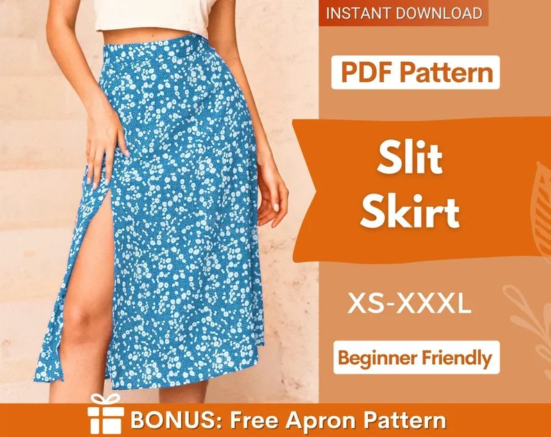 Easy Skirt Pattern | Slit skirt pattern | Women Sewing Pattern | Sewing Patterns | Summer Skirt Sewing pattern | Midi Skirt Pattern