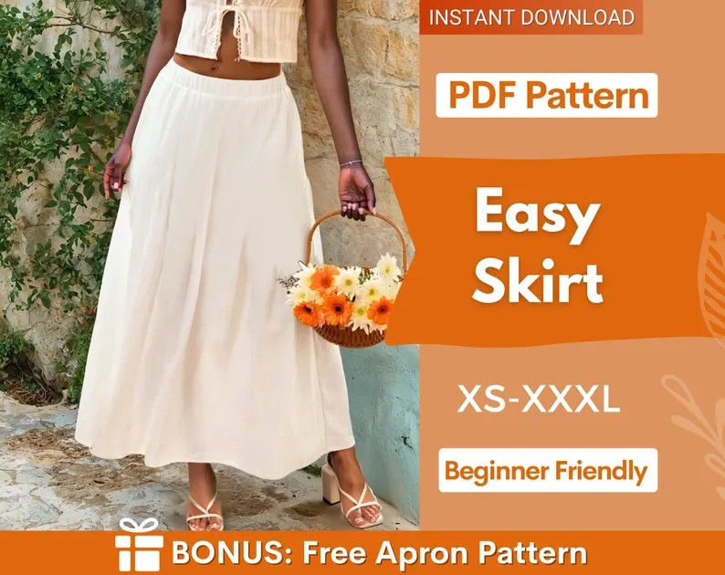 Easy Skirt with Pockets Sewing Pattern | Maxi Skirt Pattern | Women Skirt Pattern | Sewing Patterns | Women Sewing Pattern, Skirt Pockets