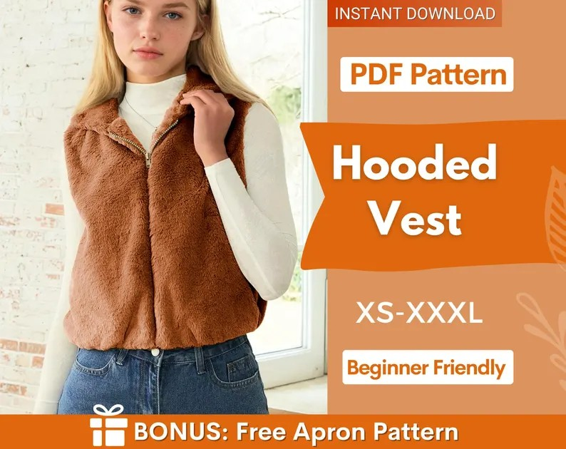 Hooded Vest Sewing Pattern for Women | Sewing Patterns | Women Pattern | Jacket Sewing Pattern | Puffer Vest Pattern Women | Teddy Vest