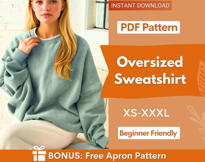 Oversized Sweatshirt Sewing Pattern, Women Sweatshirt, Hoodie Pattern, Women Sewing Pattern, Sweater Pattern, Beginner Sewing Pattern