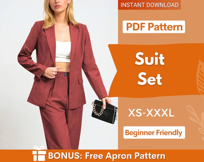 Suit Set Sewing Pattern | Blazer Sewing Pattern | Pants Pattern Women | Suit Pants Pattern | Women Sewing Pattern | Suit Patterns Women