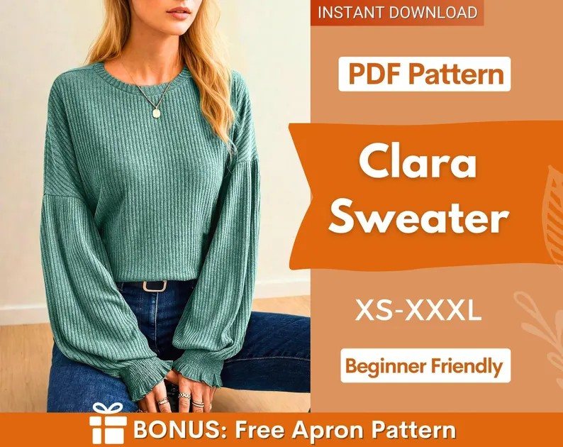 Sweatshirt Sewing Pattern | Women Sewing Pattern | Sweater Sewing Pattern | Women's Sewing Pattern | Puff Sleeve Sweatshirt, Sweater Pattern