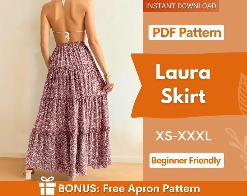 Tiered Maxi Skirt Pattern | Skirt Sewing Pattern | Women Skirt Pattern | Sewing Patterns | Women Patterns, Long Skirt Pattern, Tiered Skirt