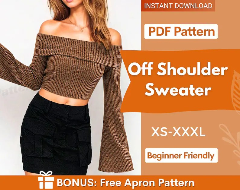 Off Shoulder Sweater Sewing Pattern | Sweater Pattern | Womens Top Pattern | Sewing Patterns | Women Patterns | Off Shoulder Top Pattern